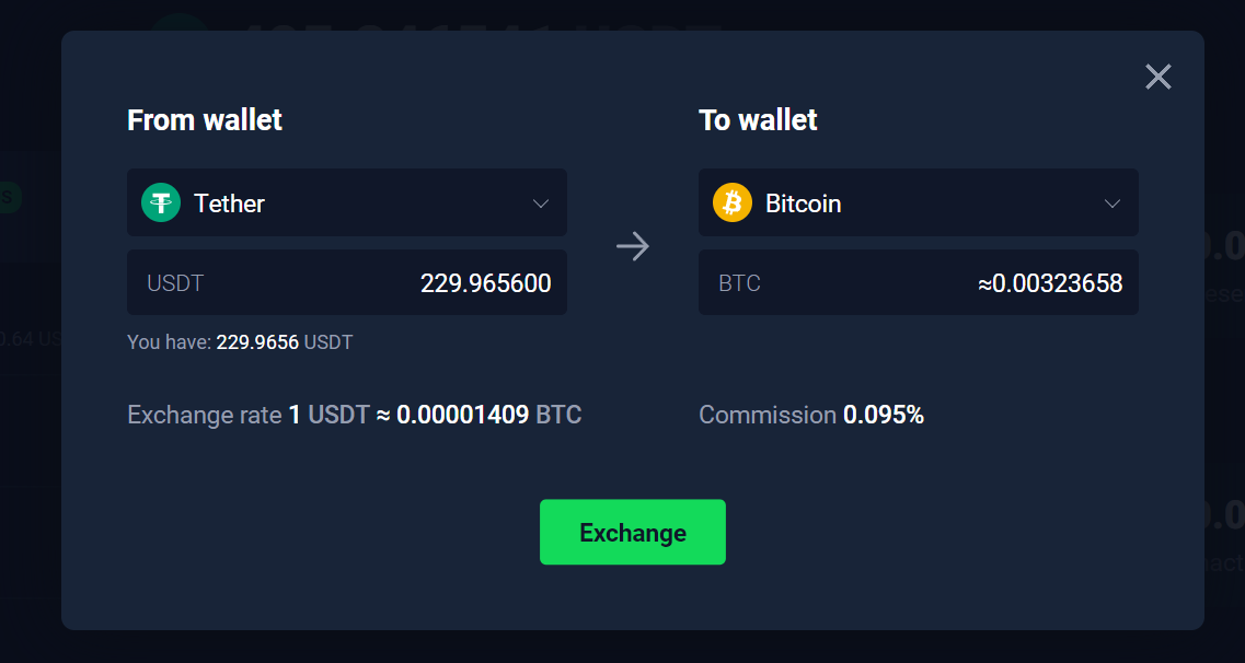 Once you click on the convert, it will show you the USDT to BTC conversion and commission.